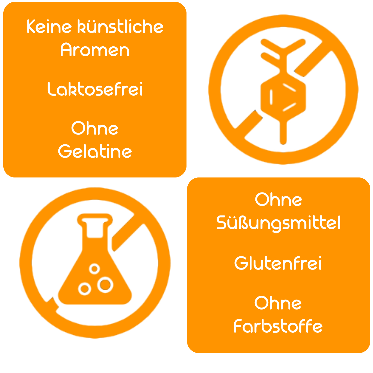 Die angegebene empfohlene tägliche Verzehrmenge darf nicht überschritten werden. Nahrungsergänzungsmittel dienen nicht als Ersatz für eine ausgewogene und abwechslungsreiche Ernährung und eine gesunde Lebensweise. Außerhalb der Reichweite von kleinen Kindern lagern.
